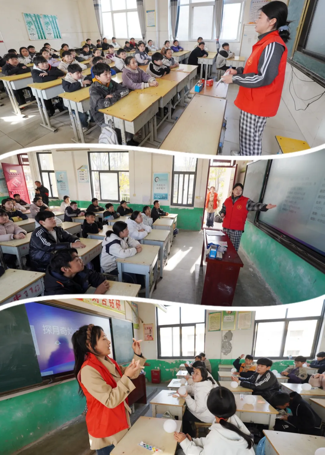 大河网讯 11月11日,新乡职业技术学院志愿者团队走进原阳县路寨乡王村中心小学和陡门乡第一初级中学,开展“快乐成长”文艺助力乡村学校少年宫新时代文明实践行动共4场。活动围绕太空探索主题,通过知识科普与创意手工相结合的方式,让乡村孩子们在趣味互动中探索宇宙奥秘,点亮了他们心中的科学梦想。