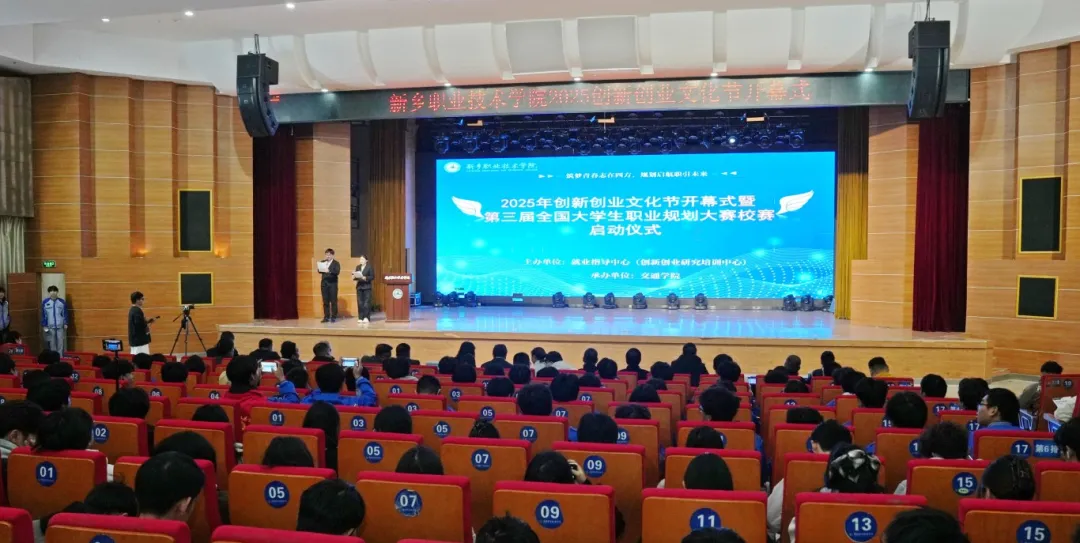 在张林的宣布声中,新乡职业技术学院2025年创新创业文化节暨第三届全国大学生职业规划大赛校赛正式启动。